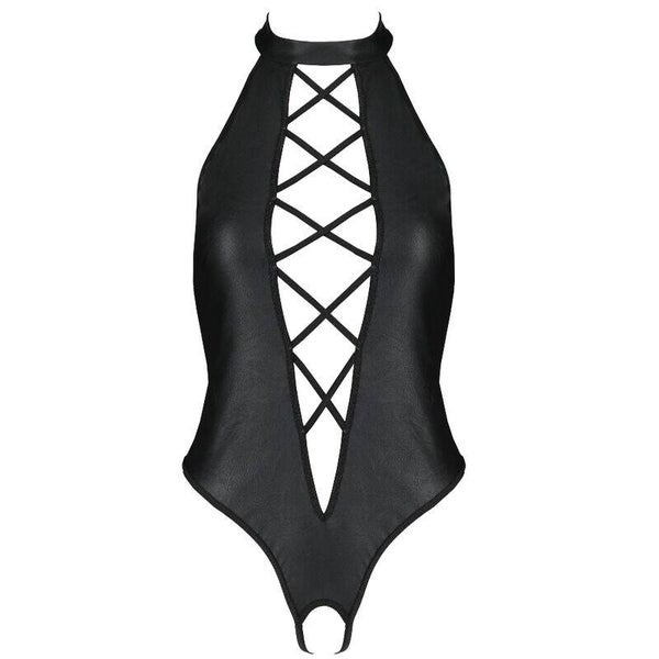 El teddy Nancy combina una pizca de obscenidad y delicadeza. Todo gracias al cuero negro y a un escote profundo que encaja a la perfección con las rayas cruzadas. ¿Podría ser más sensual?