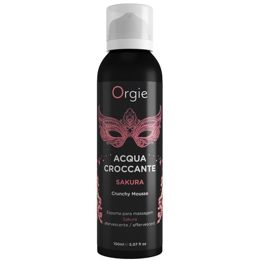 Acqua Croccante es una espuma hidratante y efervescente, con delicioso aroma a Sakura, que al aplicarse sobre la piel y bajo la suave presión de sus manos, provoca efervescencia: las pequeñas burbujas que están en la espuma explotan y causan una experiencia única, súper excitante y agradable.